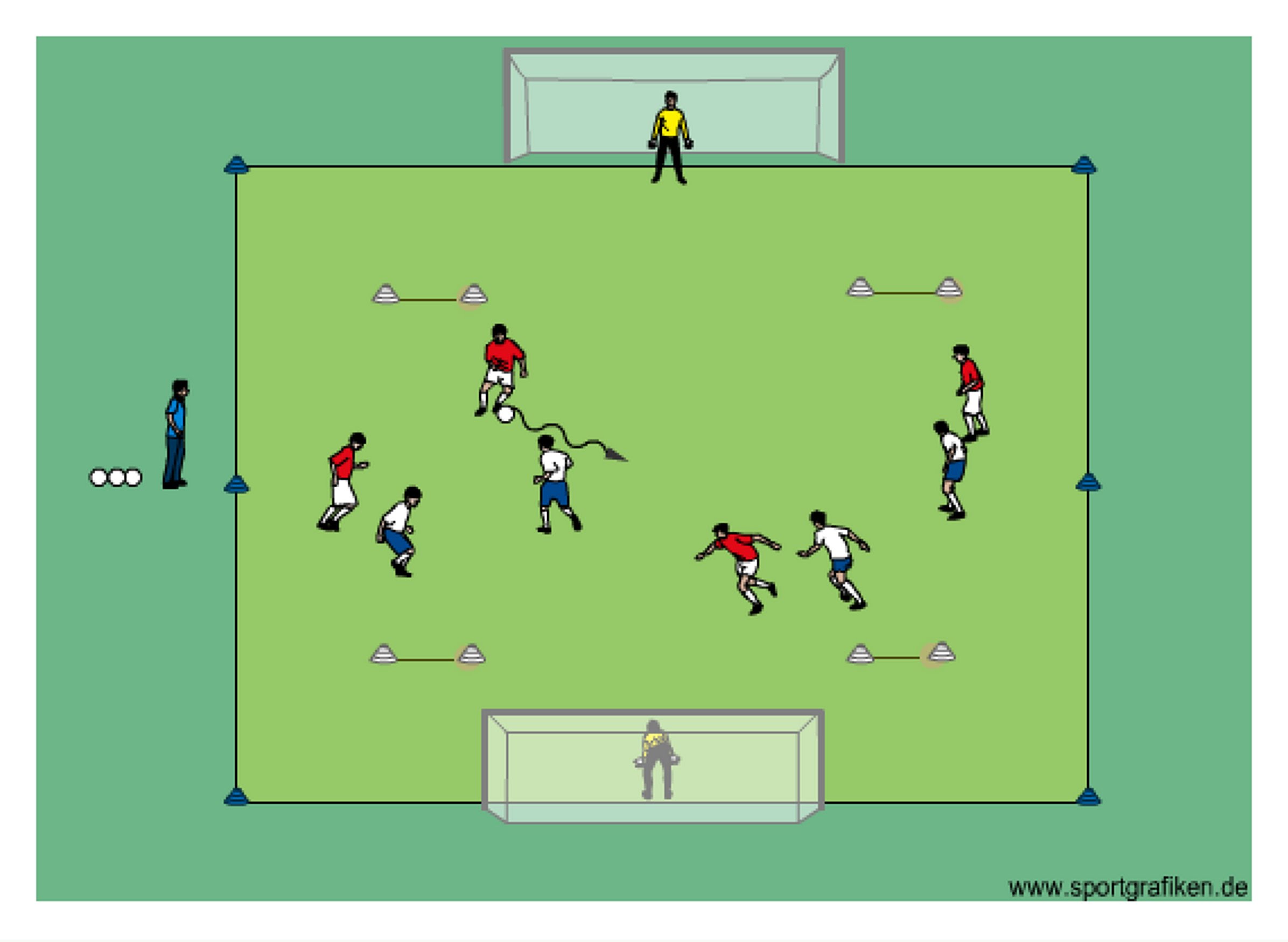 • teams score by dribbling through any cone goal and two points for scoring a goal