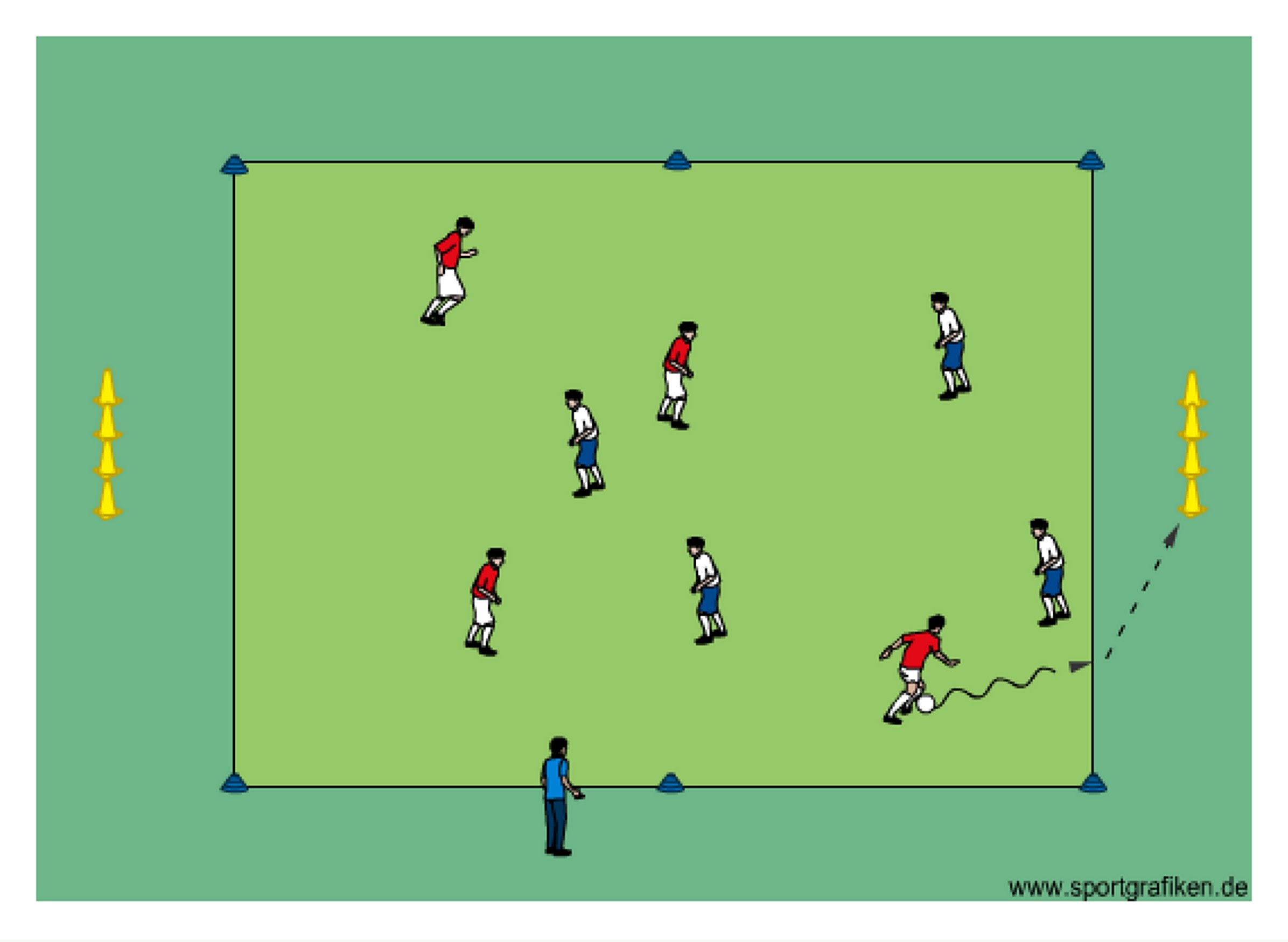 - another point is awarded if they knock down one of the cones with the first touch after they dribble across the end line