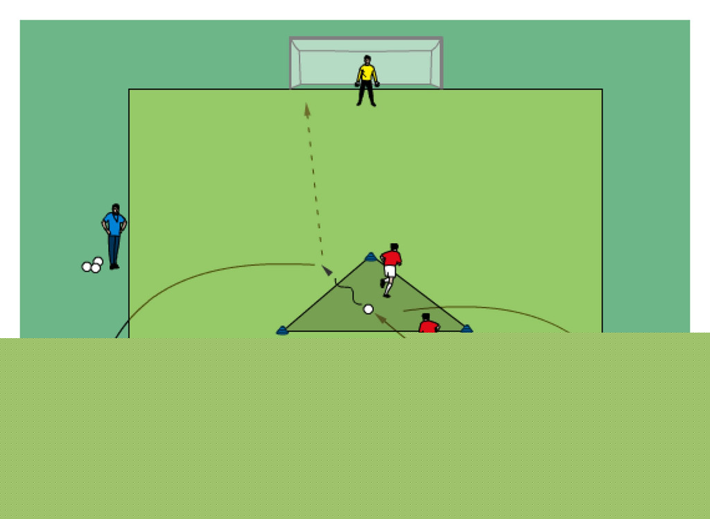 - both players dribble around cones until coach gives a signal to shoot on goal