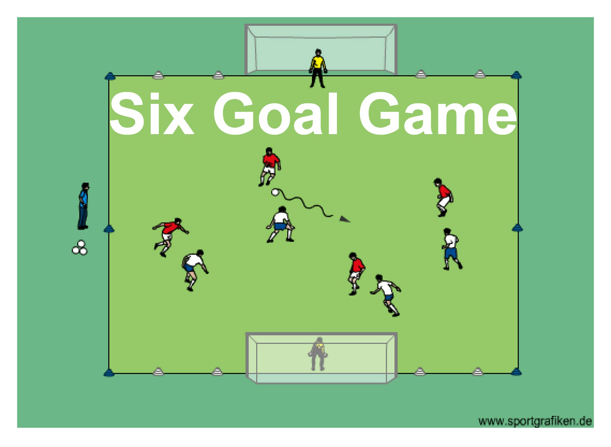 - each team defends and attacks 2 cone goals and 1 goal with goalie