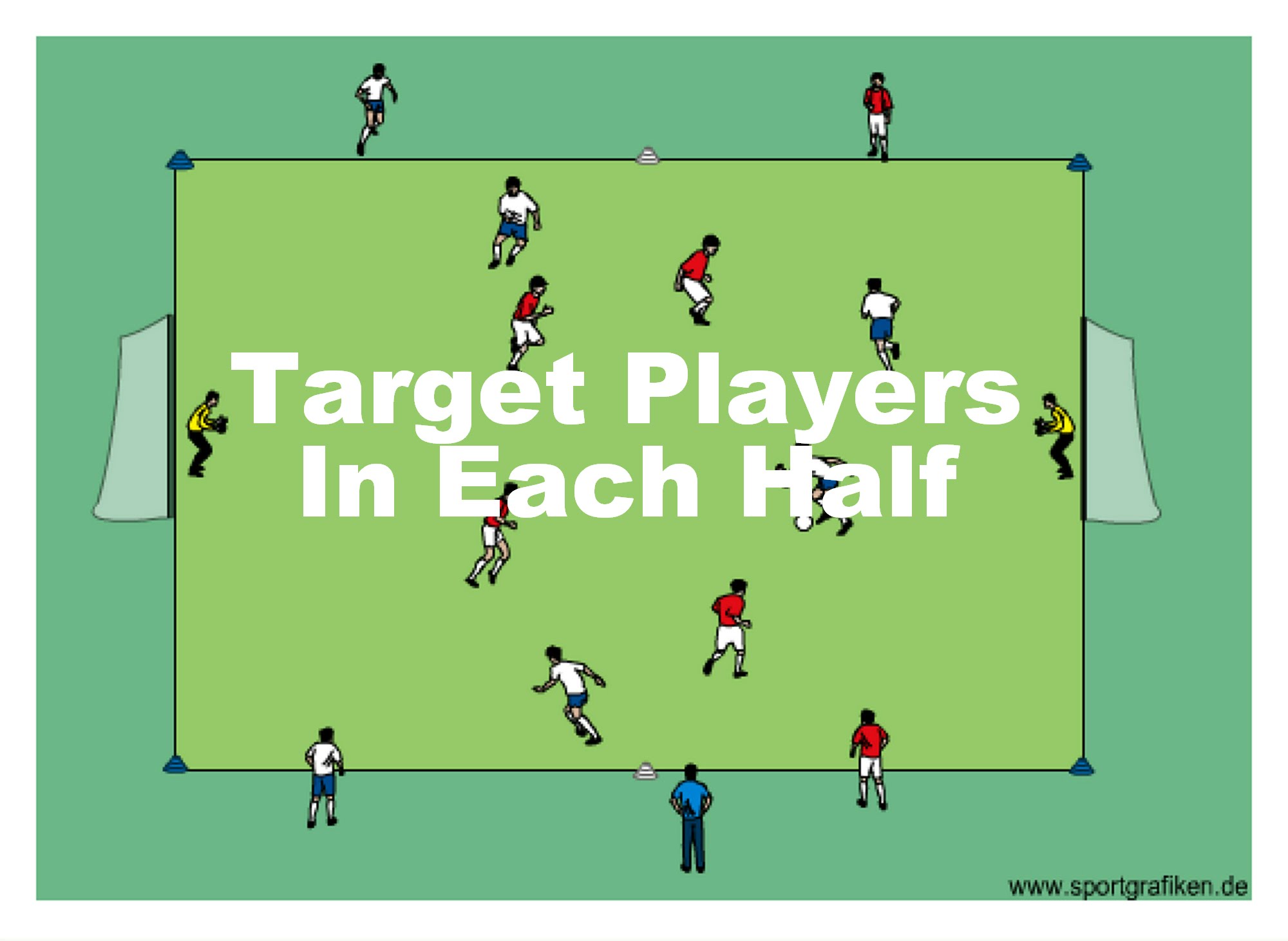- if a target player receives the ball from a teammate he dribbles it onto the field (passer takes the target players position)