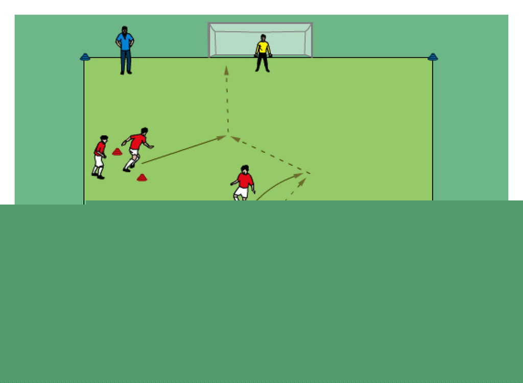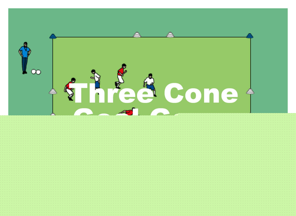 - blue-white team in the middle zone starts with the ball and attacks one end and tries to score on one of the two mini goals