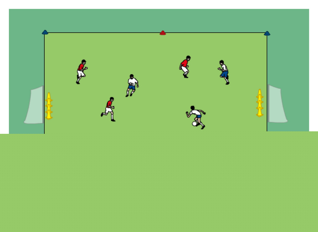 - if possession is won the ball has to be passed across the middle line to one of the two attackers