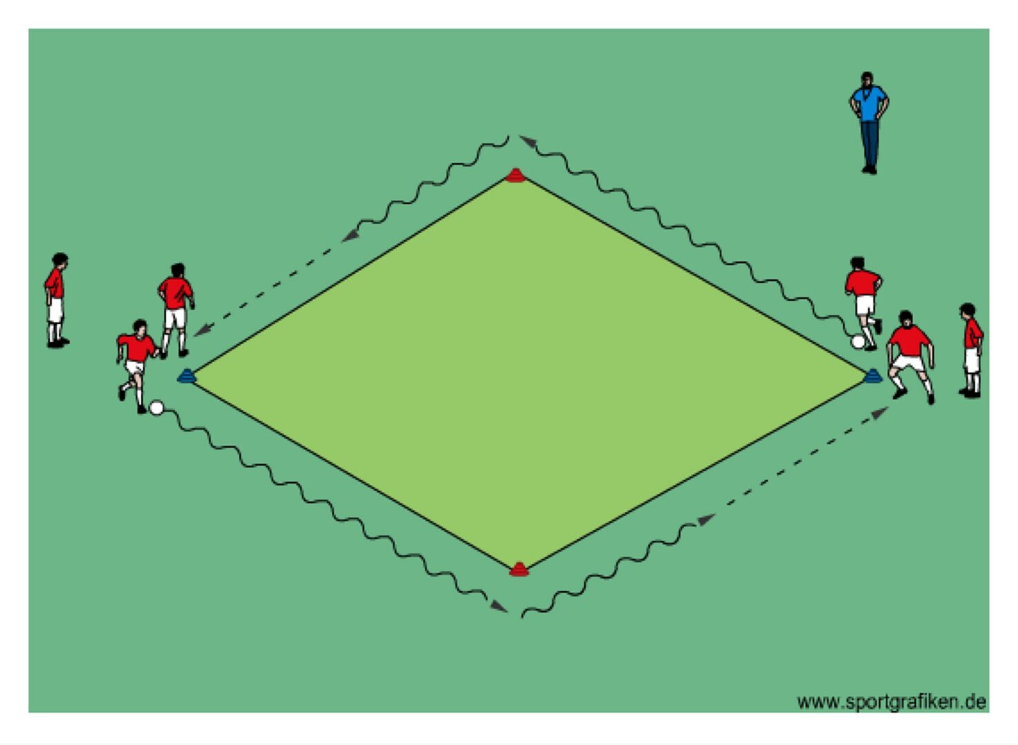 - the shooters run towards the ball and attempt to finish on goal on their first touch