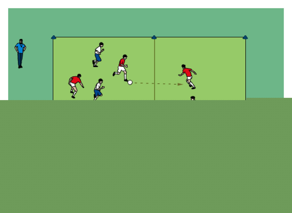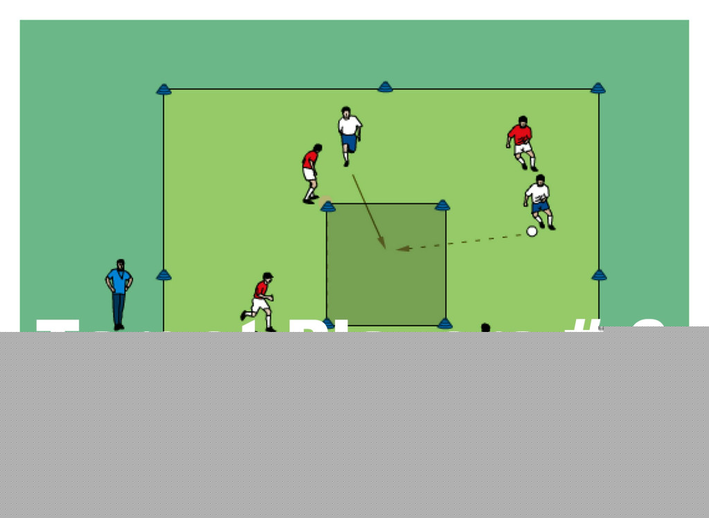 - same player now becomes the defender in a 1v1 against the player from group (b) who starts