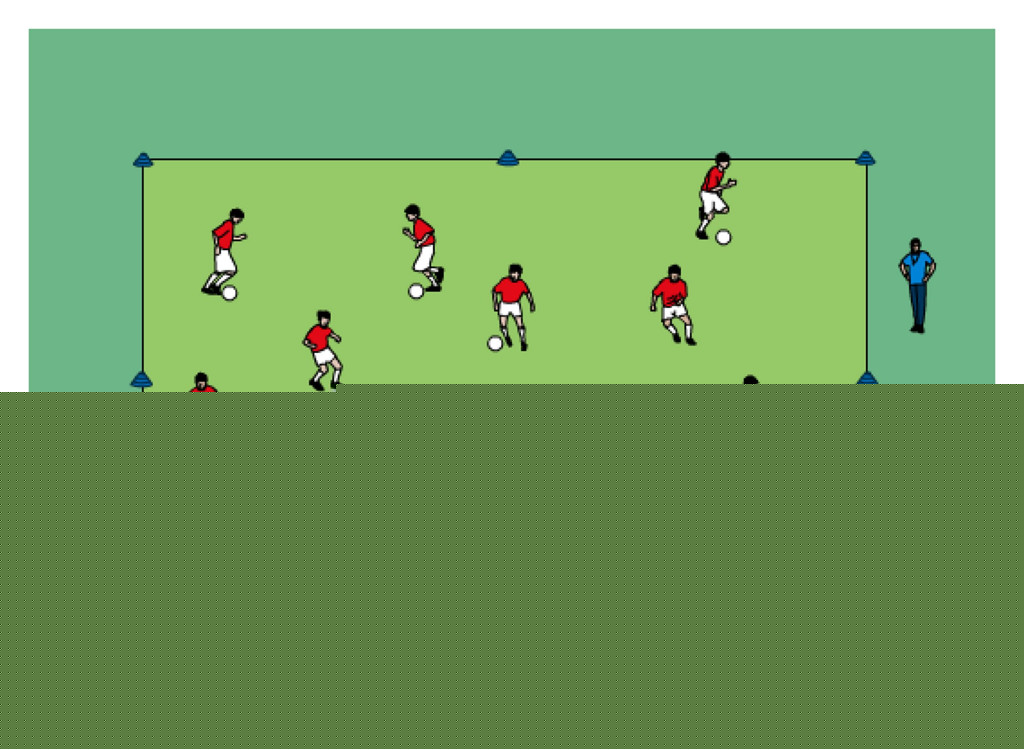 - first player in group (a) dribbles zigzag around cones and shoots it high at the goalie