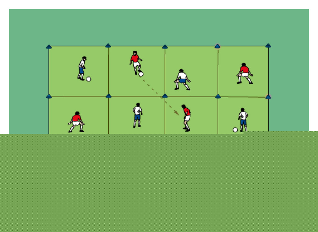 - player who made the first pass then makes a run through the neighboring cone goal to receive the