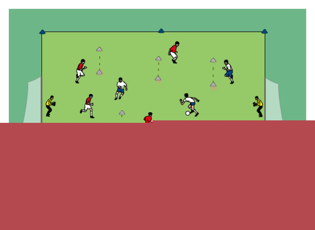 - players dribble with changes of direction &speed and on coach's command stop the ball with various body parts i.e. (elbow, knee, head, bottom etc.)