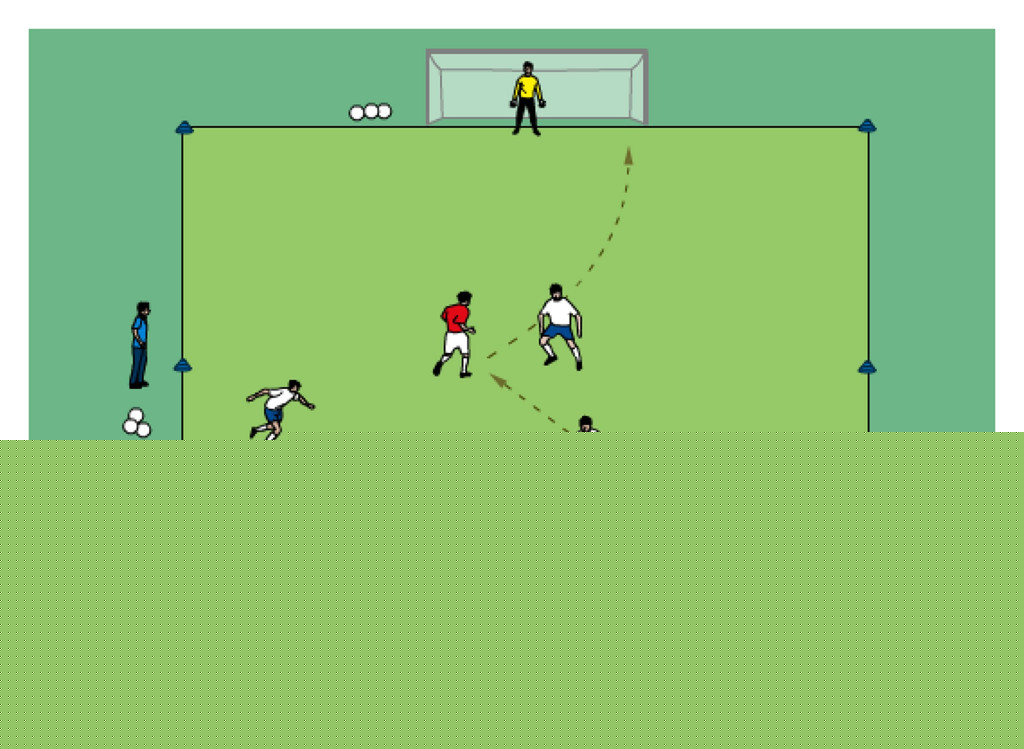 - the team with three players in a zone plays keep away from the two defenders by utilizing a neutral in the middle zone (4v2)