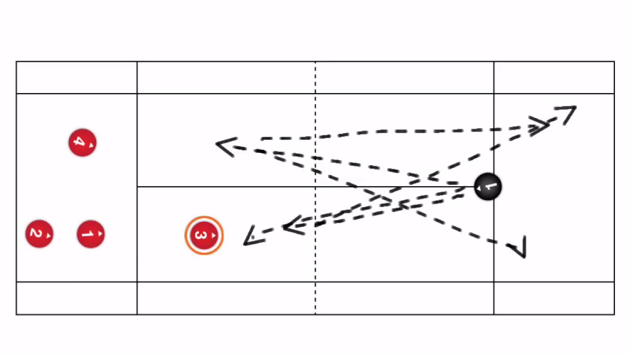 - Coach stands with a basket of balls to feed three consecutive shots