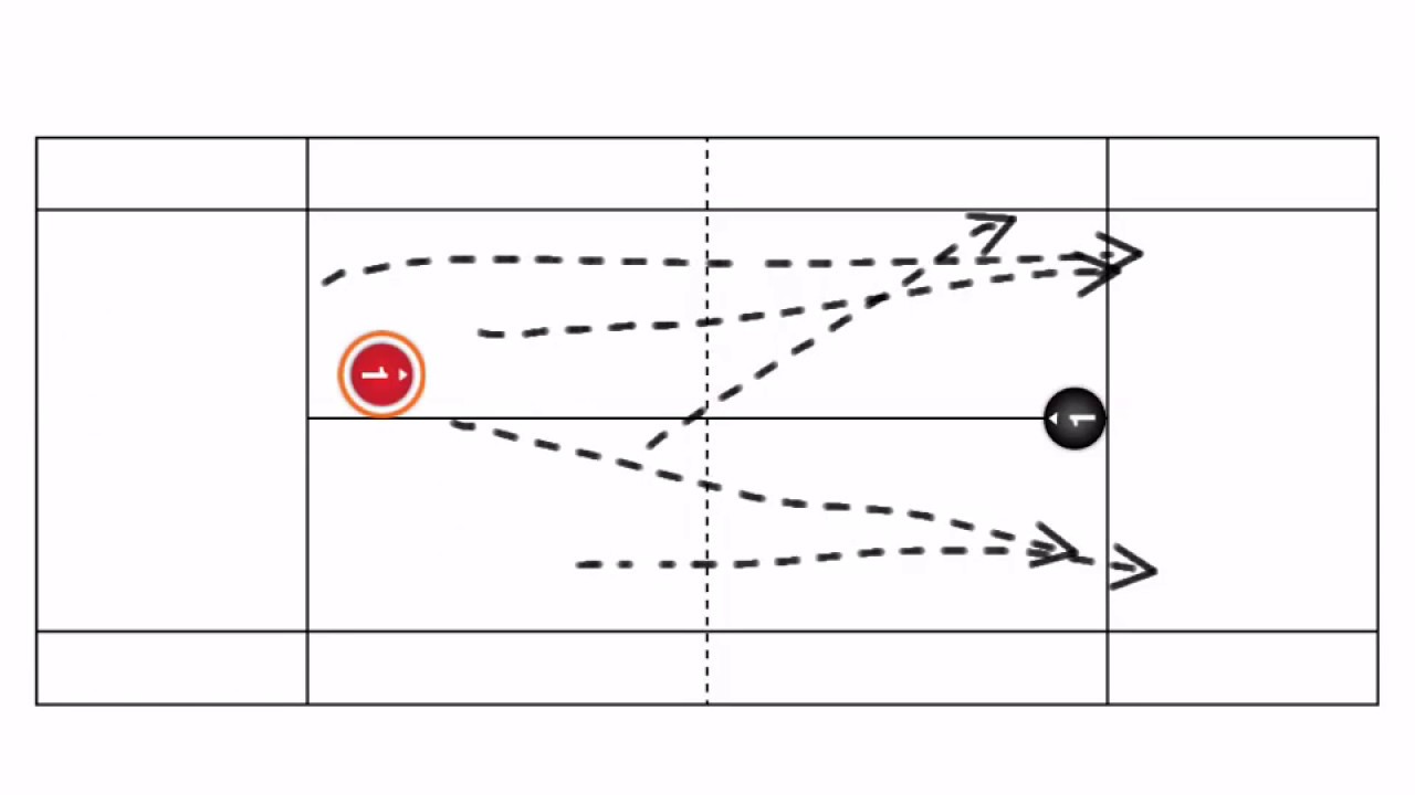 - Player A balances a ball on their racket, then gently tosses it into the air toward Player B