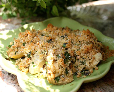 - Cover the artichoke hearts with bread crumbs and cheese