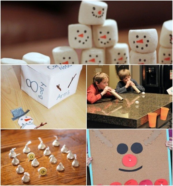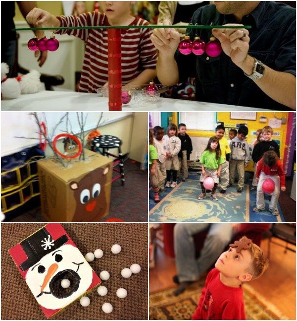 Balancing Ornaments / Reindeer Toss / Penguin Race / Hungry Snowman / Face the Gingerbread Man