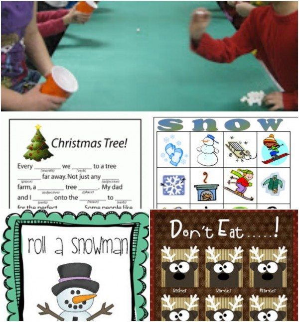 Snowball Toss / Holiday Mad Libs / Winter Bingo / Roll a Snowman / “Don’t Eat___!” Games